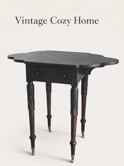 Elegant Antique Black Ornate Carved Table with antique casters.