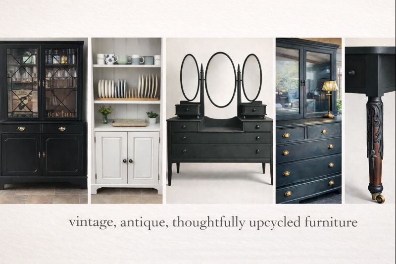 Vintage Black Vanity Dresser with Mirrors – Antique Dressing Table